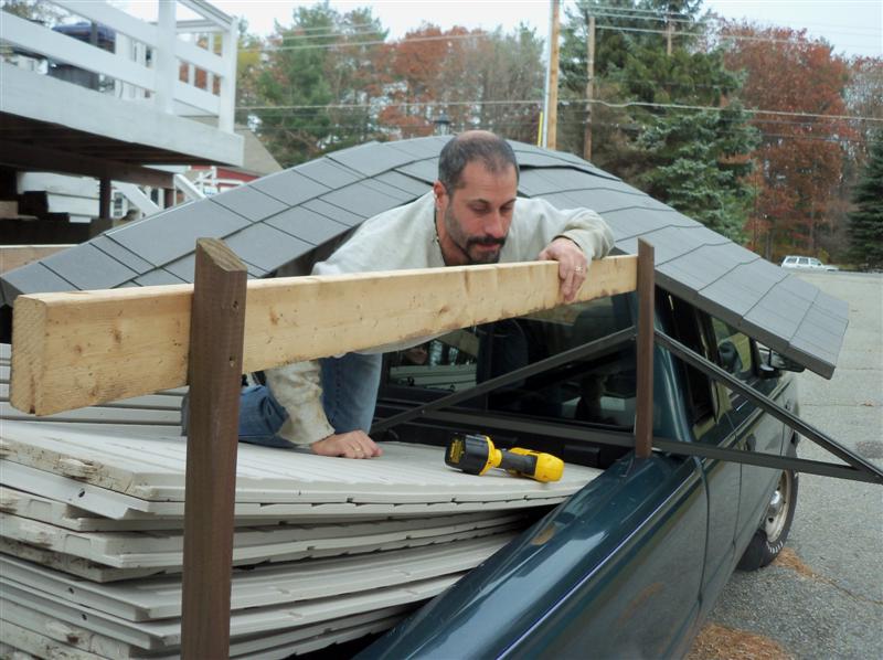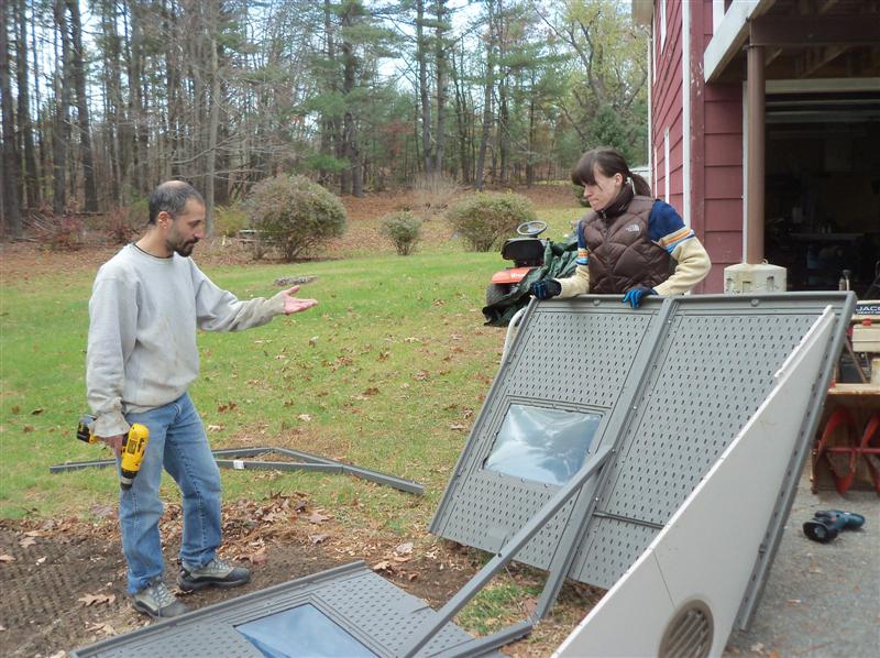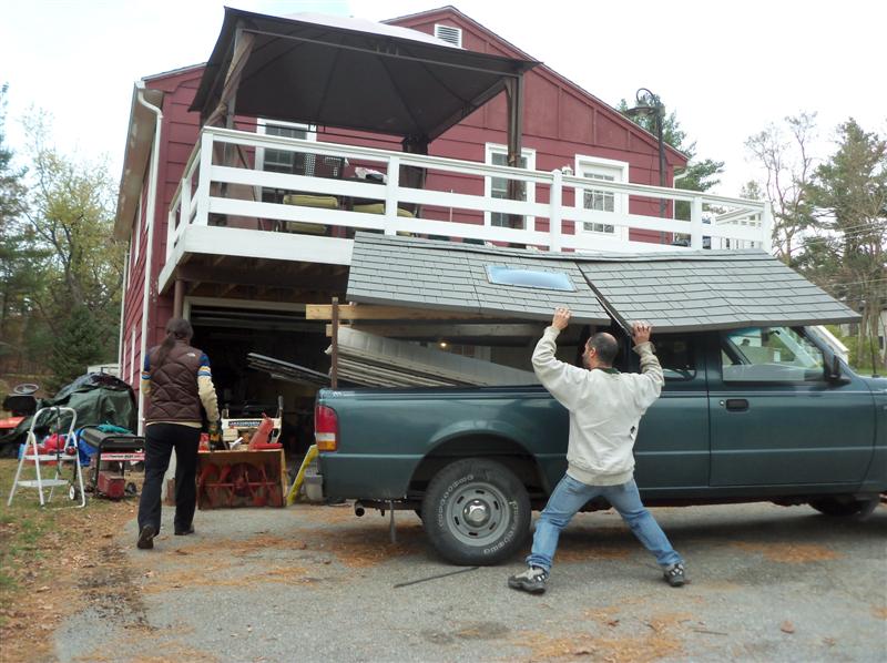 Fred and Diane arrived from Fitchburg a tad late, which was fine by me, as I was just finishing a late breakfast of scrambled eggs and home fries as the pickup pulled into the driveway. I had spent a little time the night before removing every other screw to make the disassembly a bit quicker. I had predicted that it would take about 45 minutes to tear it down and pack it up. I grabbed the battery drill driver, and headed out into the cold. It was show time.